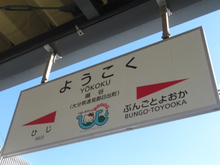 大分県日出(ひじ)町のJR暘谷(ようこく)駅では、2018年11月17日から入線メロディーにハローキティ誕生40周年アニバーサリーソング「ARIGATO HUG YOU」を使用している。