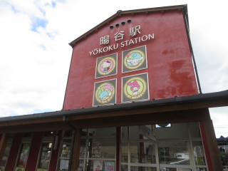 サンリオキャラクターがデザインされた暘谷駅舎