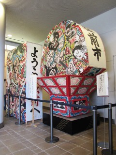(左)弘前駅舎 (右)駅構内には弘前名物「ねぷた」が飾られている
