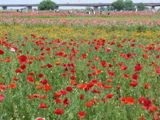 市内を流れる荒川河川敷にある広大なポピー畑