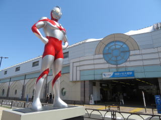 地元ではウルトラマン発祥の地をアピールして町おこしに取り組んでおり、2005年には「ウルトラまちづくりの会」が発足、駅前の3つの商店街を「ウルトラマン商店街」と名づけた。会発足1周年を記念し、商店街に「ウルトラマンシンボル像」「ウルトラマンアーチ」が設置されることになったのにあわせて採用された。